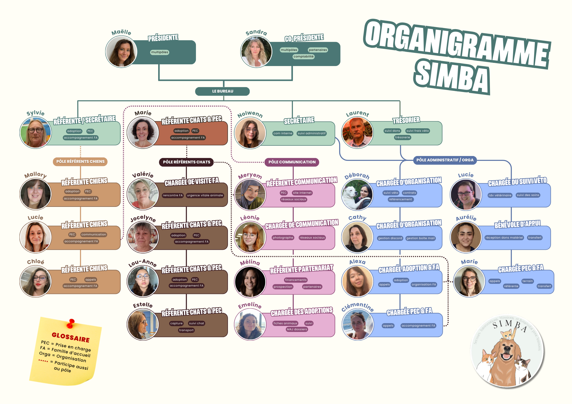 Composée de 23 bénévoles engagés et passionnés, notre association repose sur une équipe soudée qui œuvre chaque jour pour le sauvetage, la protection et le bien-être des animaux dans le besoin. Chacun, à son échelle, apporte son temps, son énergie et ses compétences afin de faire avancer les actions de SIMBA et de défendre la cause animale avec sérieux et bienveillance.